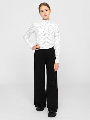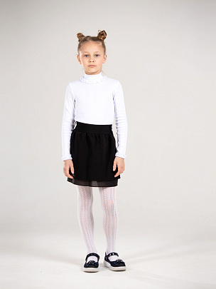 Водолазка с коротким рукавом. Рукава со сборкой по окату и манжетами по низу. Воротник-стойка без отворота. Перед декорирован принтом красками с блеском.