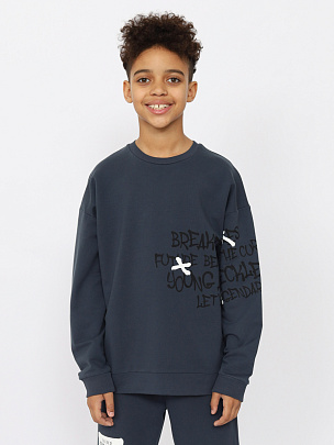 Костюм для мальчика (толстовка, брюки) темно-серый-голубой