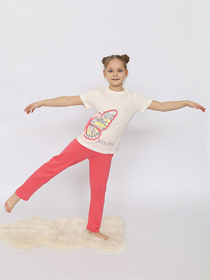 Пижама для девочки (футболка, брюки) экрю