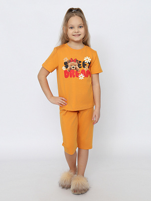 Пижама для девочки (футболка, бриджи) охра