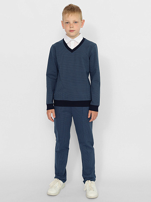 Костюм для мальчика (куртка, брюки) серый меланж-темно-синий