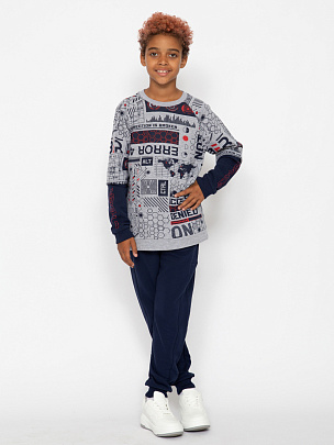 Джемпер с длинными рукавами, притачным поясом и манжетами. Рукав-реглан, отрезной, нижняя часть рукава декорирована принтом "Киберпространство".