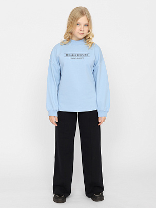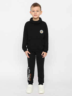 Брюки для мальчика со смещенными боковыми швами и карманами в боковых швах. По низу брюк эластичные манжеты. Пояс притачной с резинкой и функциональным шнуром. Сзади брюки декорированы принтом "Будь не таким как все и покоришь новые вершины".