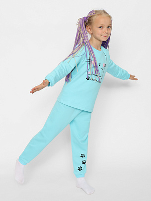 Комплект для девочки (джемпер, брюки) бирюзовый