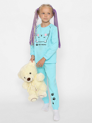 Пижама для девочки (футболка, шорты) светло-бирюзовая