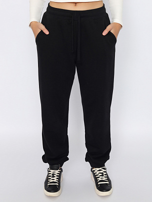 Свободные трикотажные брюки из плотного футера без начеса с карманами. Пояс притачной с резинкой и функциональным шнуром. По низу брюки собраны на резинку.