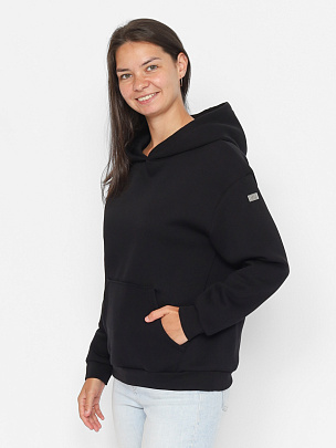 Толстовка женская с капюшоном БЕЗ ШНУРКА и карманом-кенгуру. Манжеты и пояс из эластичной рибаны. На рукаве декоративная силиконовая этикетка CRB.